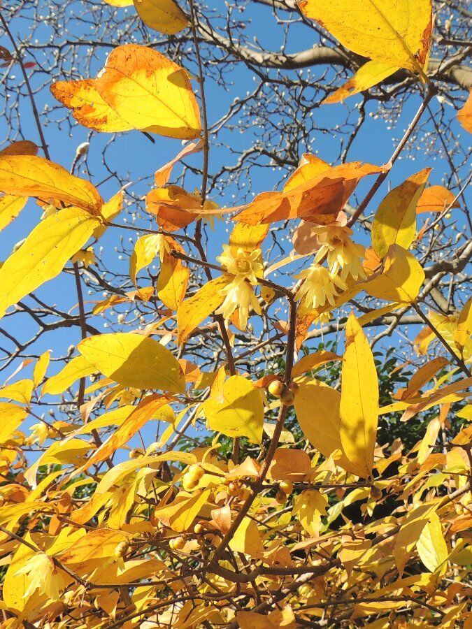 蝋梅 ロウバイ の葉は黄色に黄葉します 杜のお遊びライフ